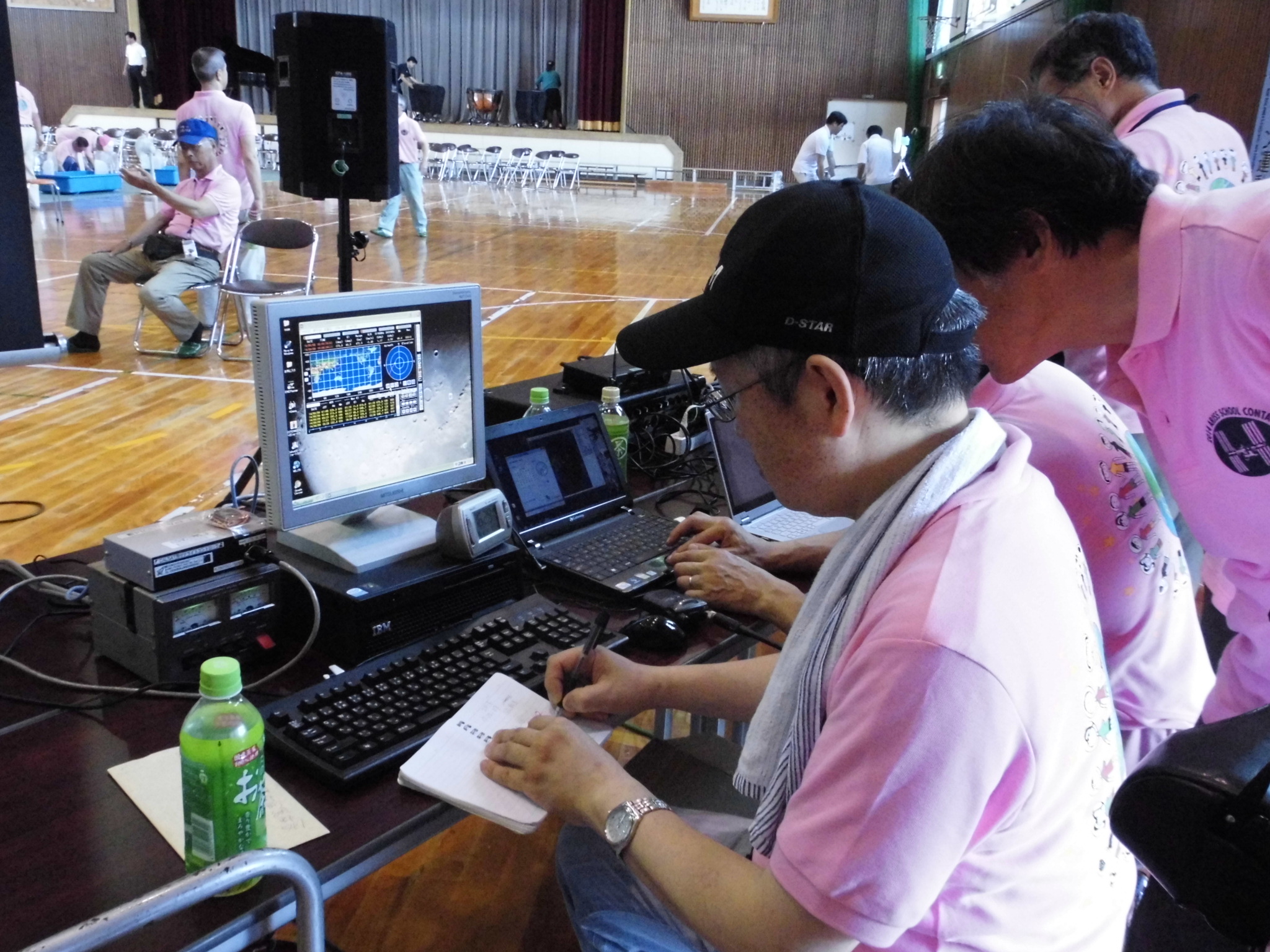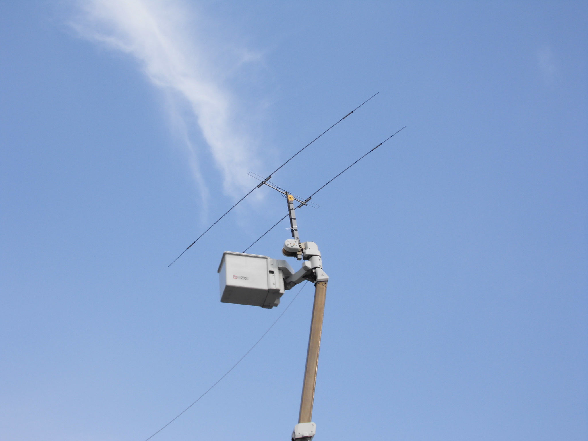 会場には地元スタッフの方がバケット車も用意頂いていたので、そちらのほうにはHFの2エレヤギアンテナを上げ、本番までの空き時間に、今回使用する臨時局のコールサイン8J3AKで一足早くPR運用をしました。