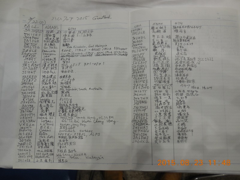 それに伴い、JAMSATのブースへの訪問者数も1日目は76名、2日目は33名ということで、1日目の午前中のみで、ノートの1ページが埋まってしまうほどの勢いでした。