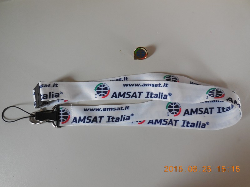 AMSAT Italiaからはストラップとバッジのプレゼントがあり、何人かは記念にいただきました。