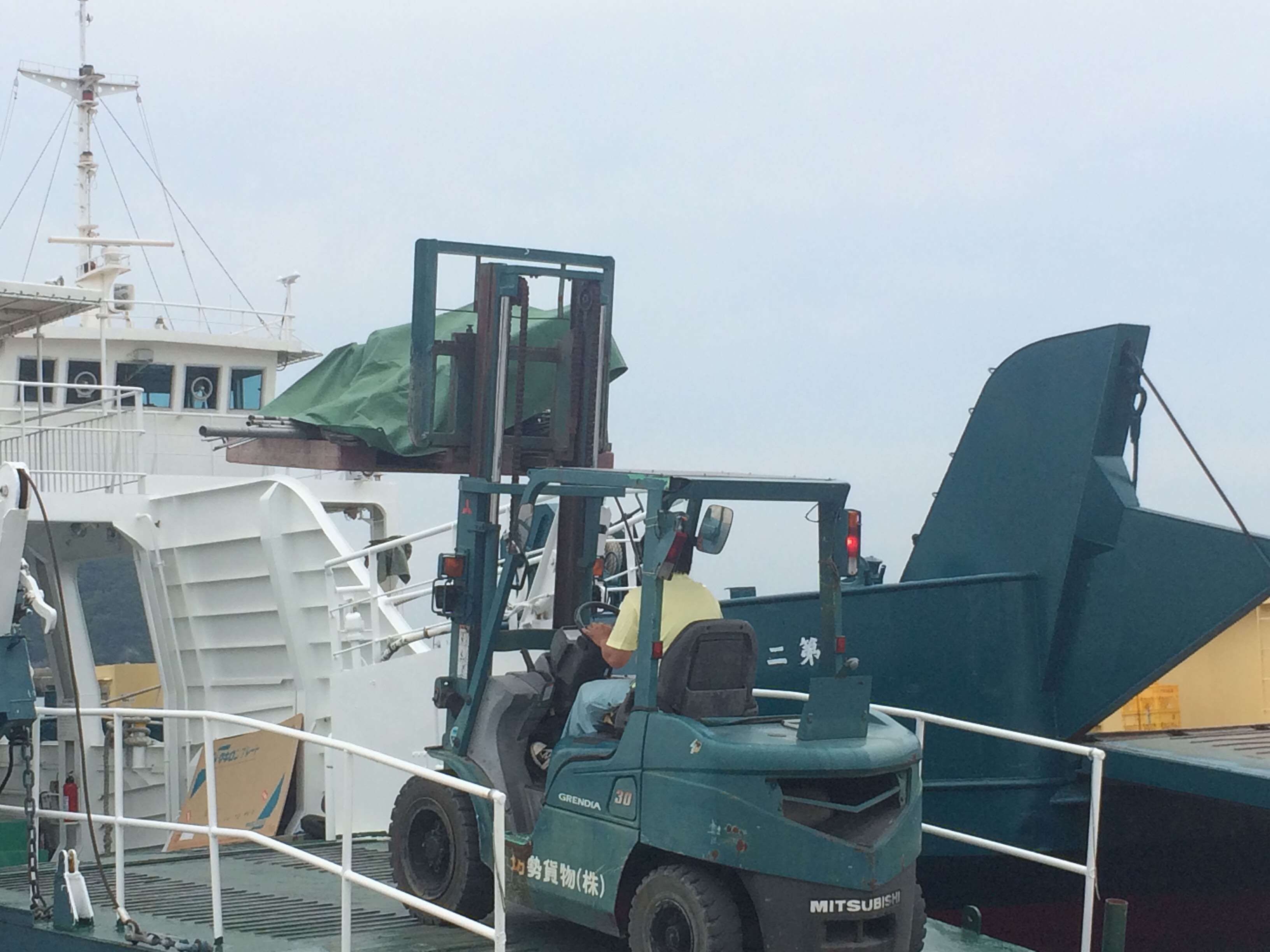 帰りは、貨物便がないため、荷物は船会社ご協力のもと我々と一緒に、14時の便で姫路港へ~その後、車で関西各地へ帰ってきました。
