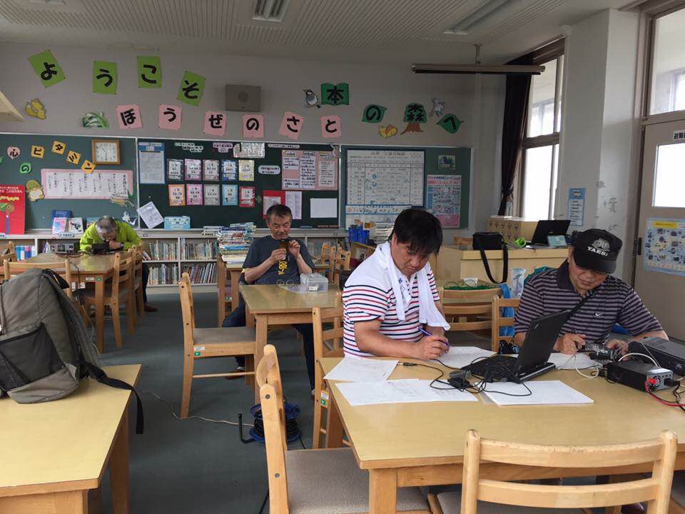 図書室をお借りして8N3Bで運用、左奥がJM3DUR、左から2人目がJH3BUM