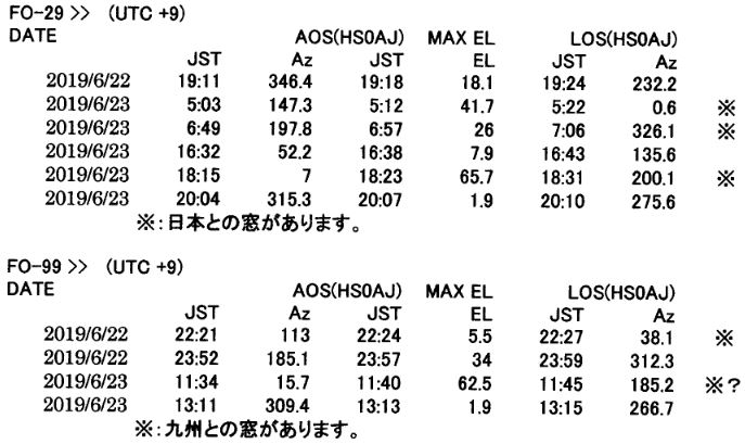 <FO-29とFO-99の時間帯(リンクファイル)>日本上空(HS0で見える時間を併記)