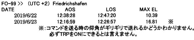 ※:FO-99についてはコマンドを送るときの仰角がぎりぎりで送れるかどうか?分かりません。必ずTRPをONにできるとは言えません。