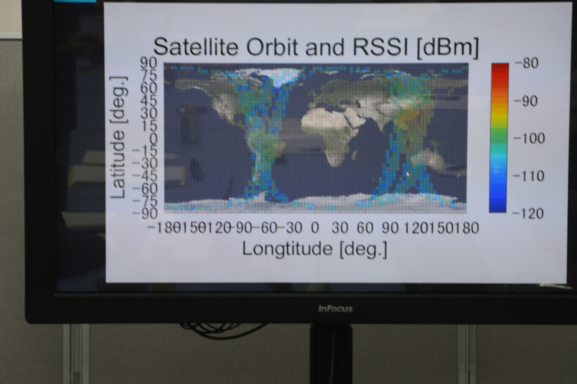 NEXUSから見た電界強度のマップ アジア地域が濃くなっている