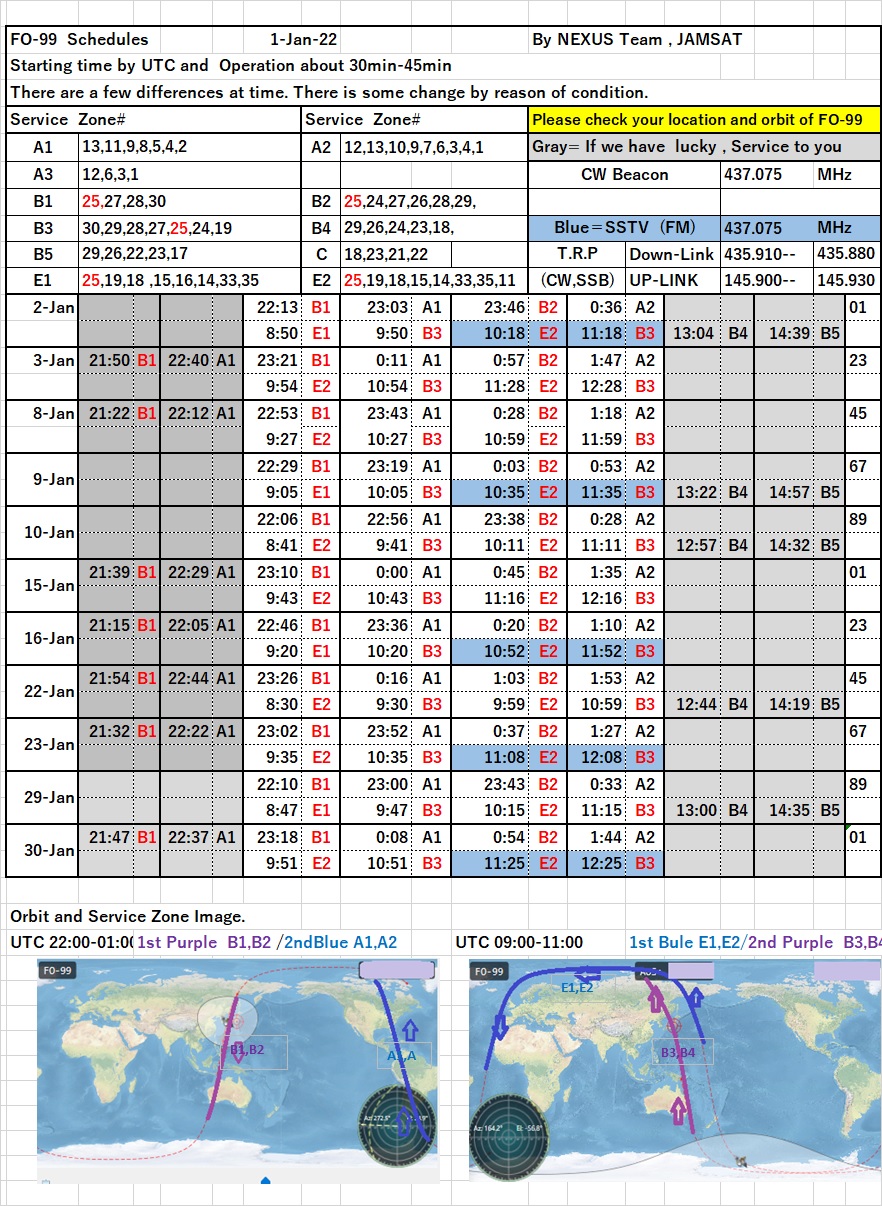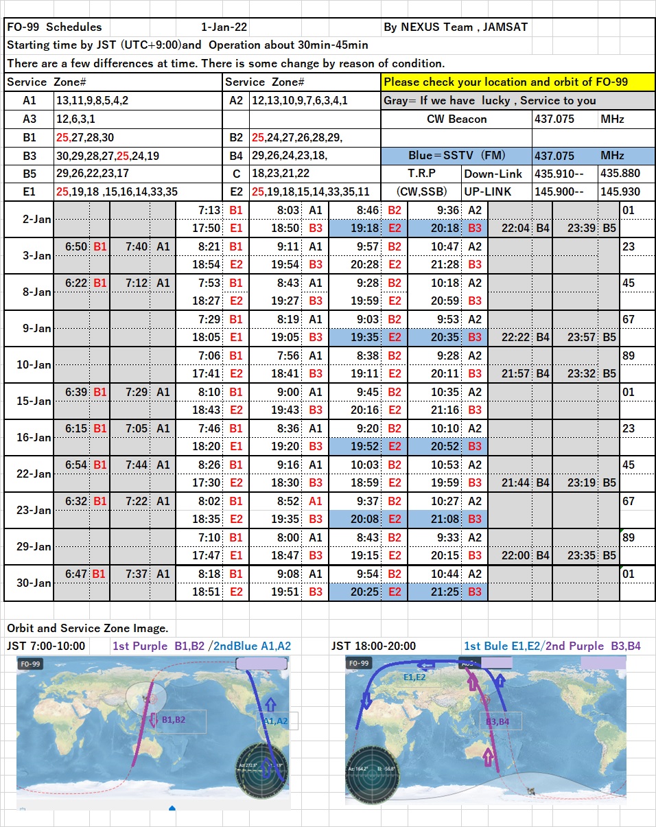 This is the NEXUS (FO-99) operation schedule for January 2022.