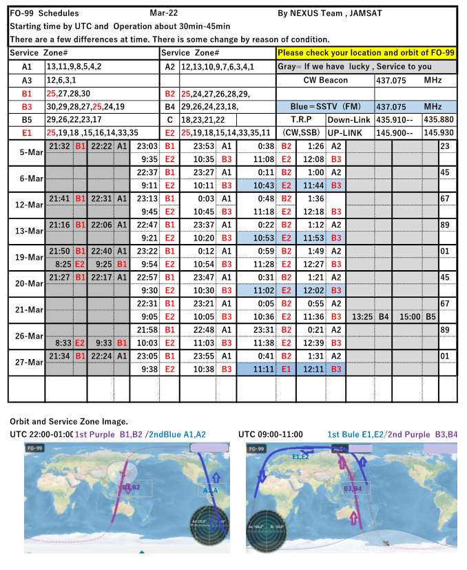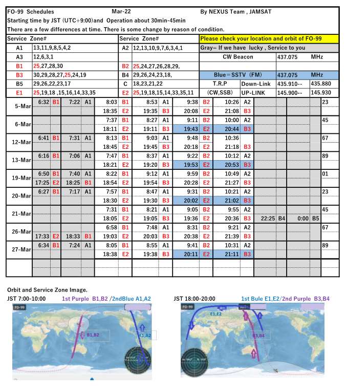 This is the NEXUS (FO-99) operation schedule for April 2022.
