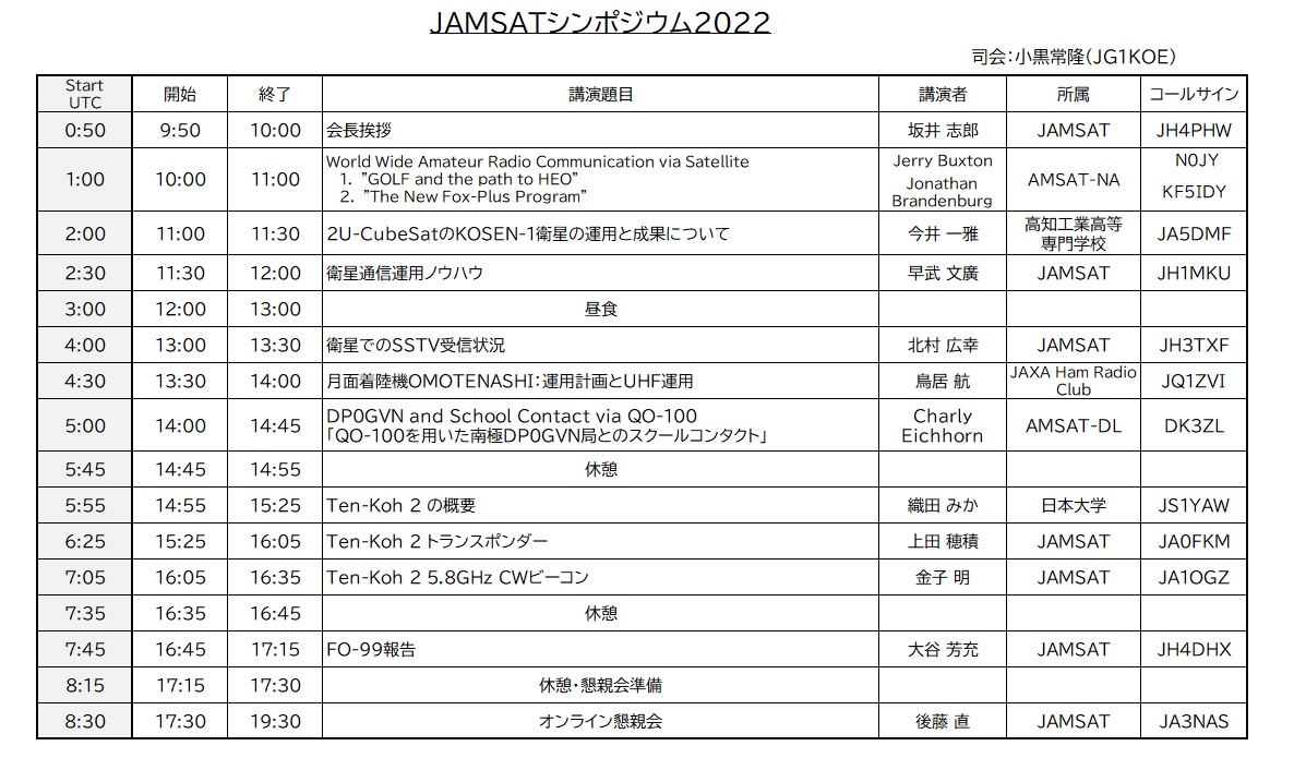 JAMSATシンポジウム2022を下記の通り開催いたします。 どなたでも参加可能です。 是非ご参加ください。