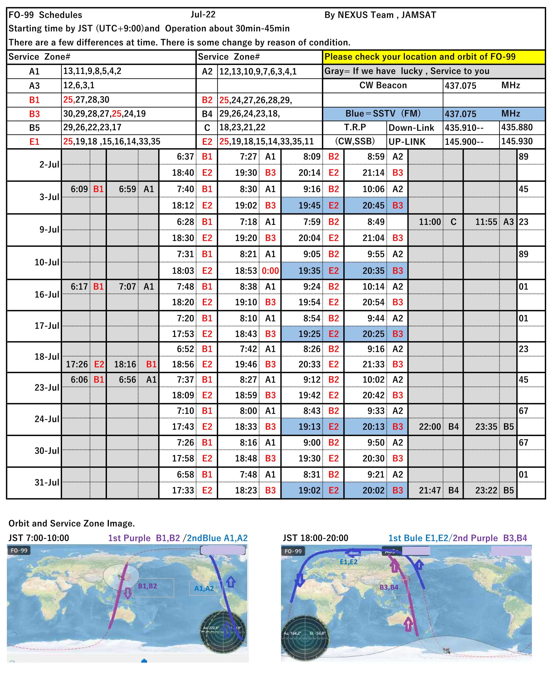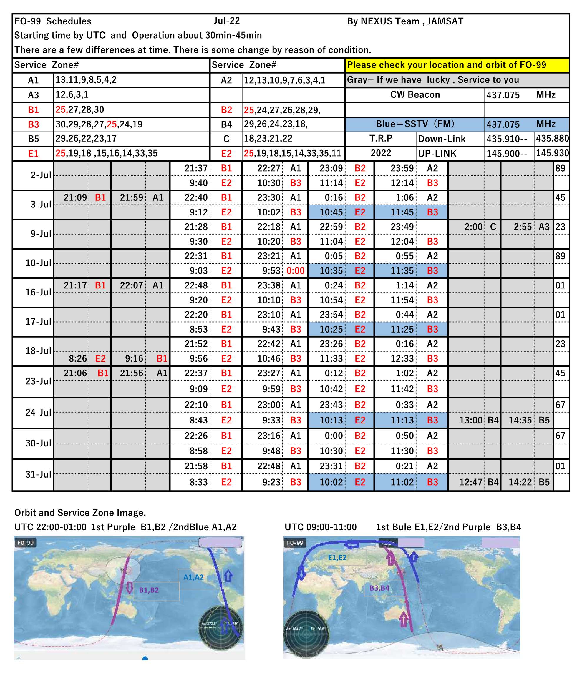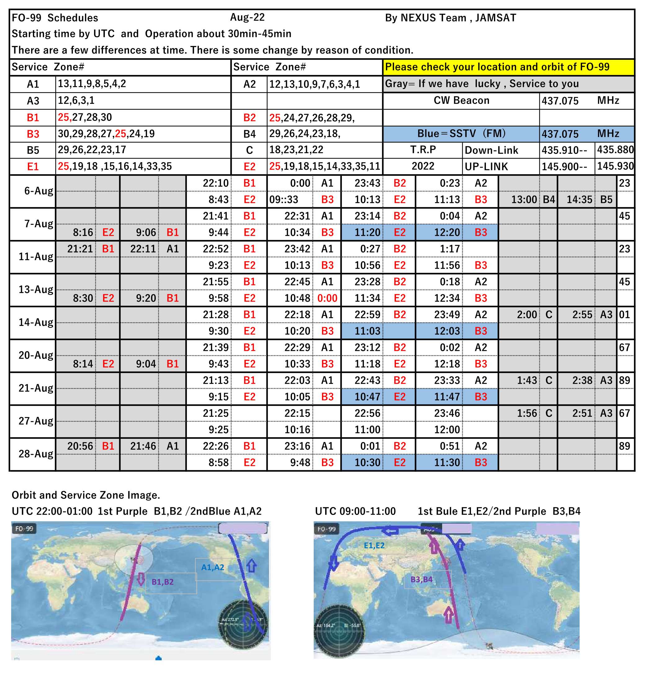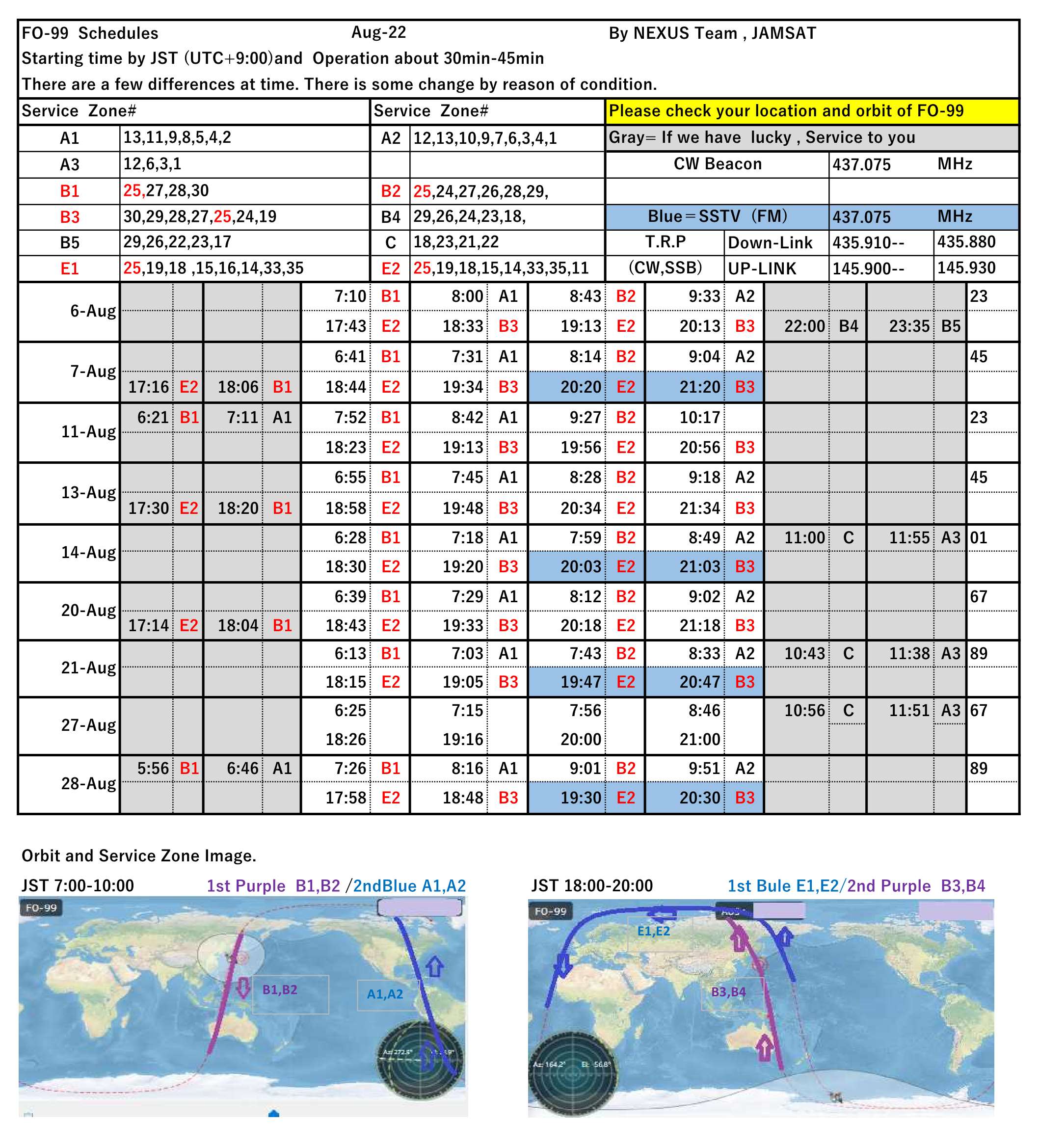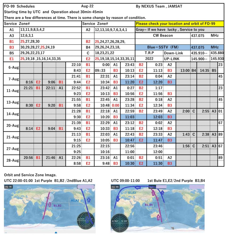 This is the NEXUS (FO-99) operation schedule for August 2022.