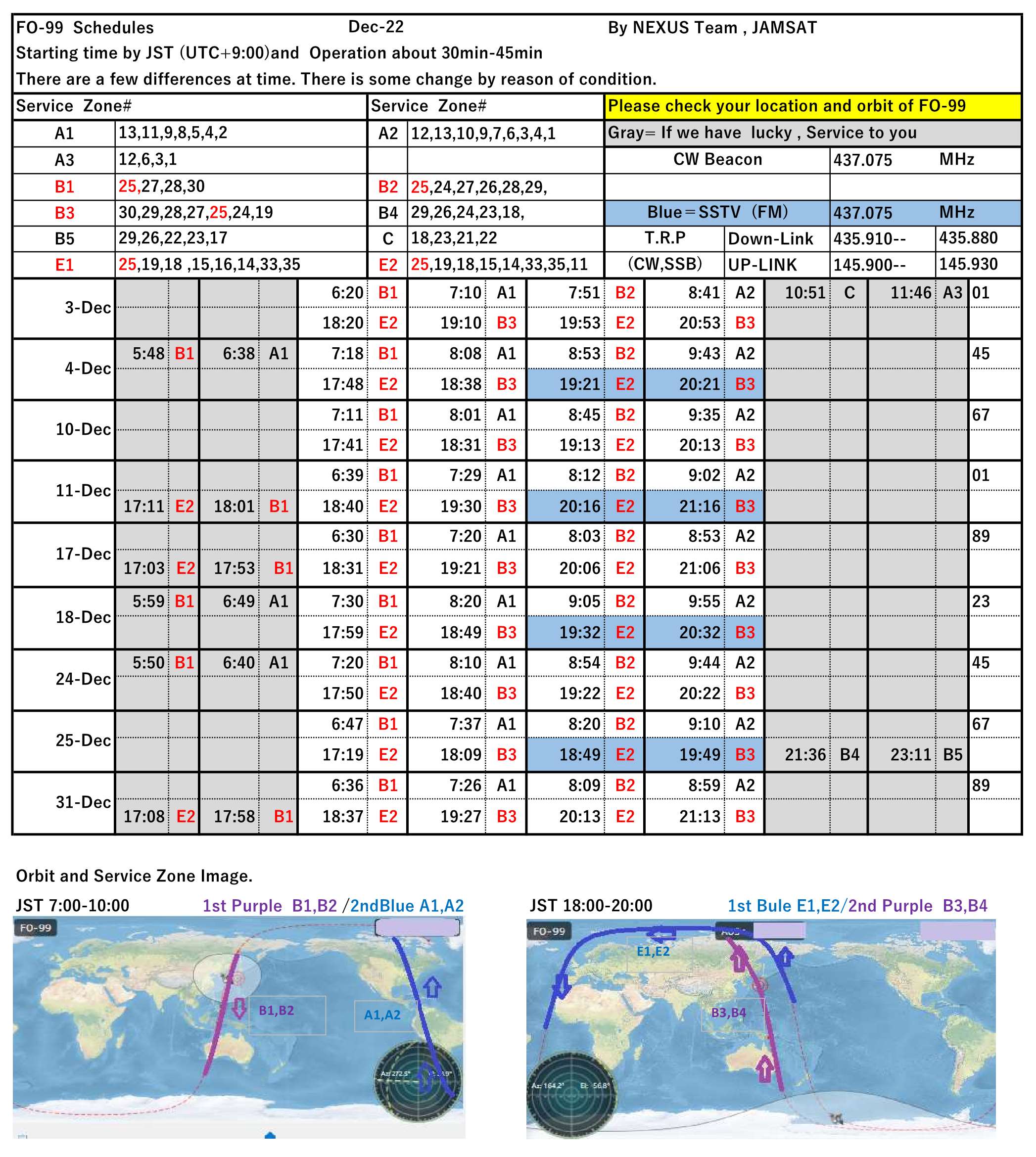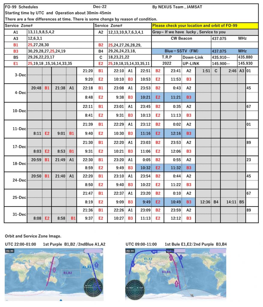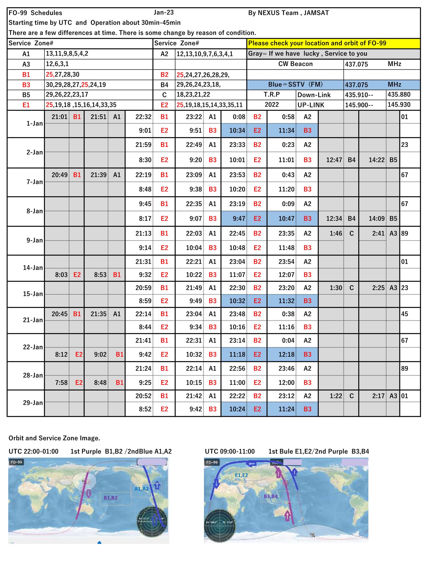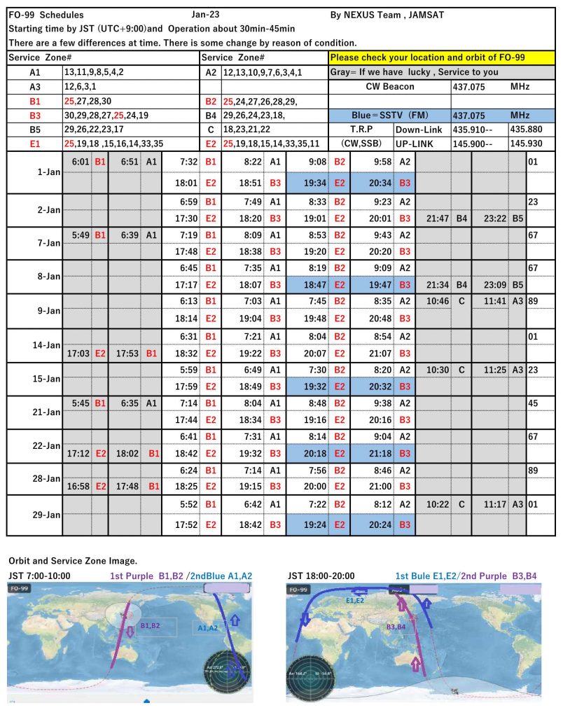 This is the NEXUS (FO-99) operation schedule for January 2023.
