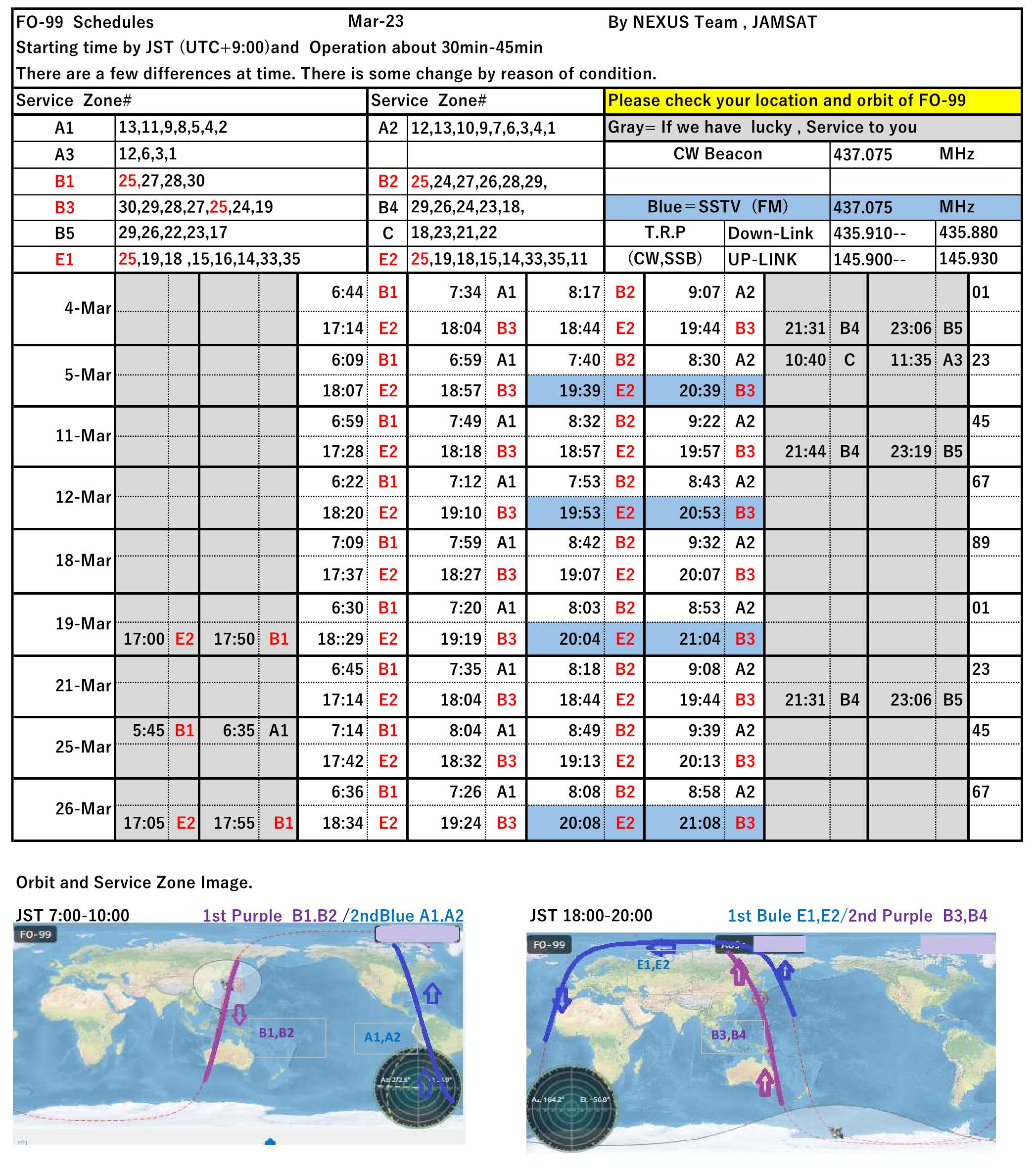 NEXUS (FO-99) operation schedule March/2023