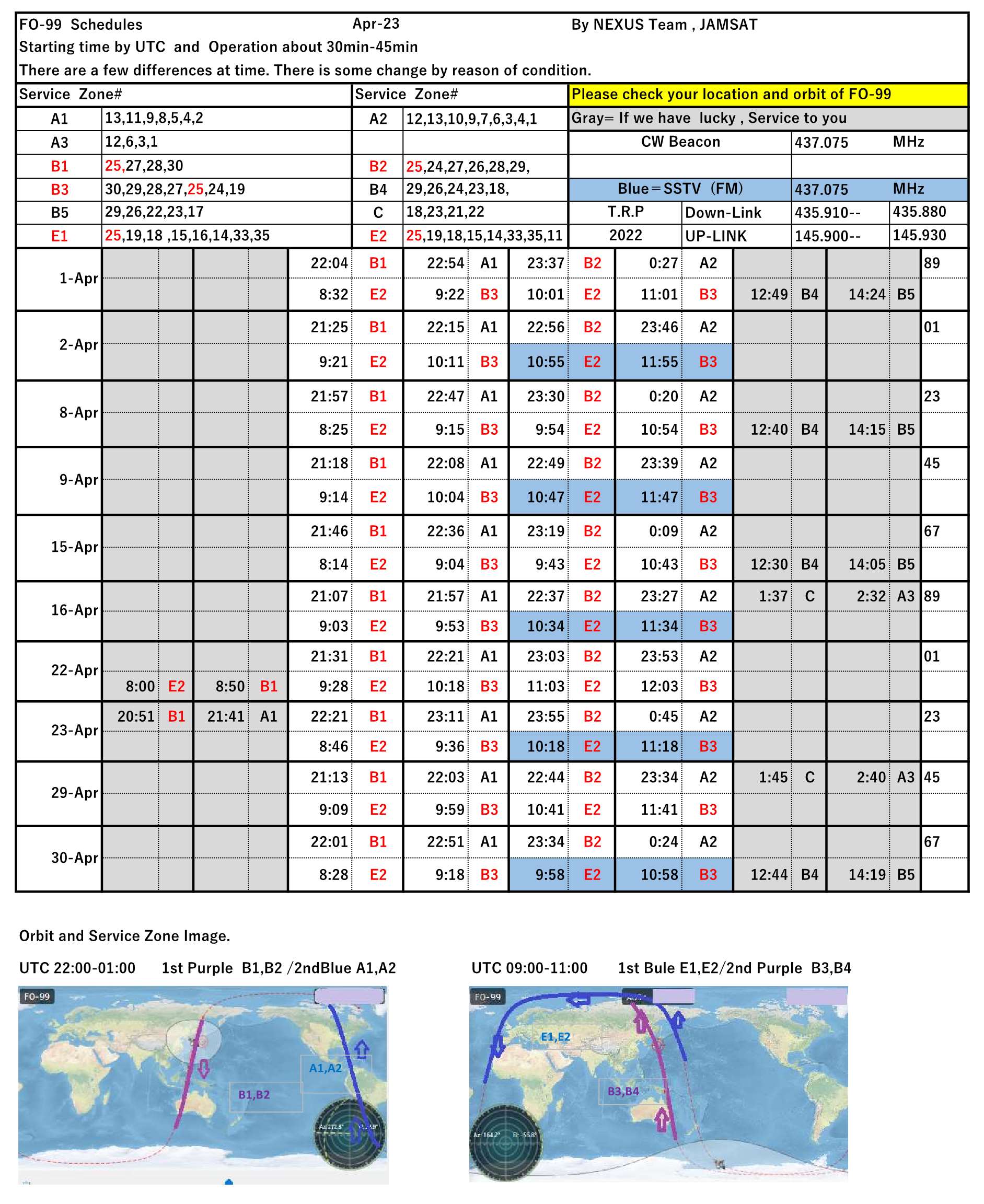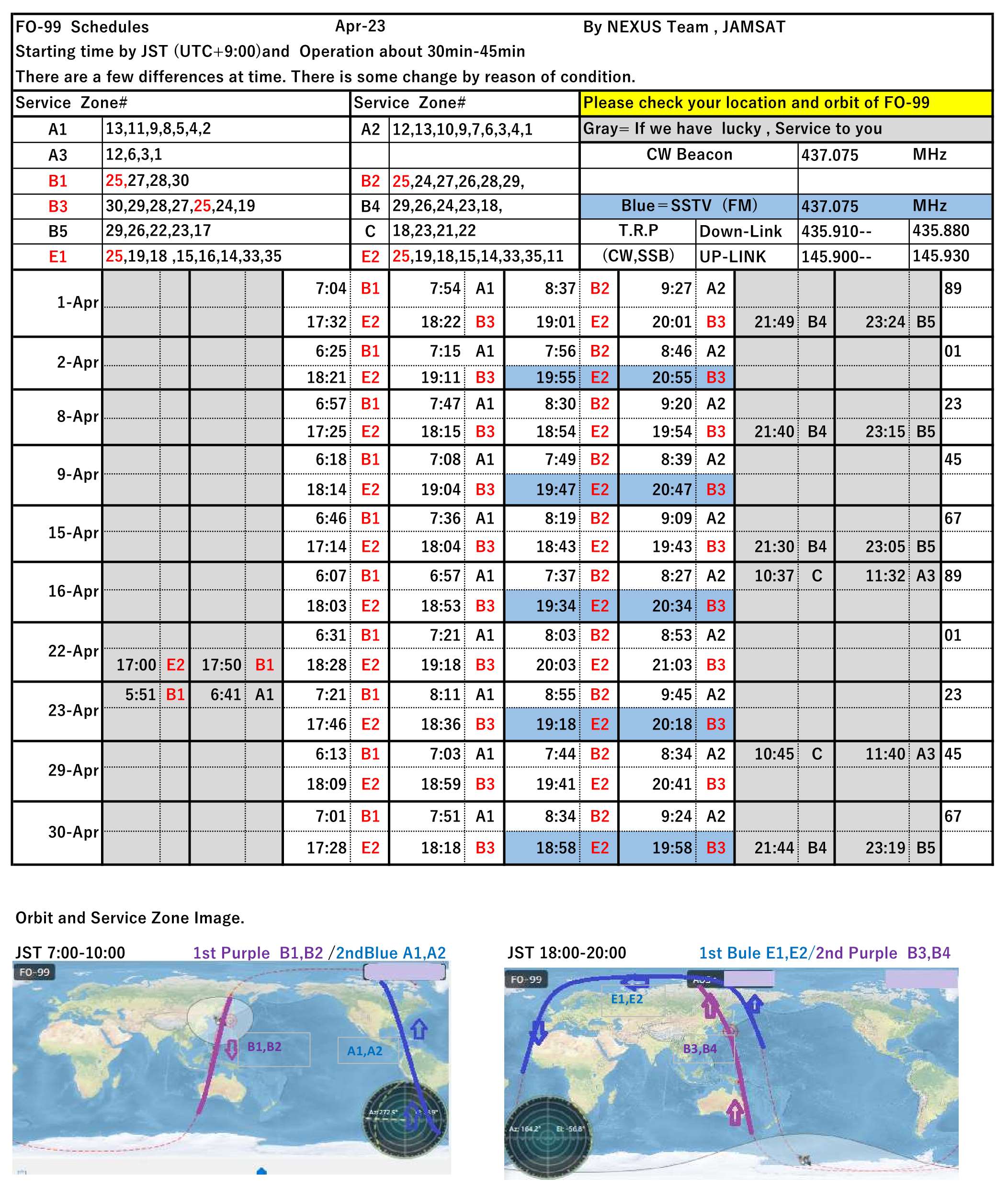 NEXUS (FO-99) operation schedule April/2023