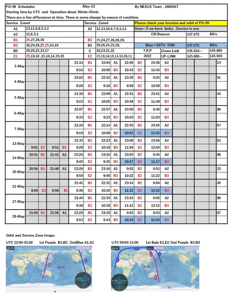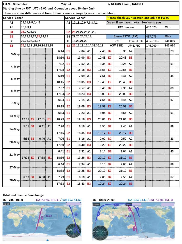 Check “Satellite Tracking” on the JAMSAT website for exact transit times.