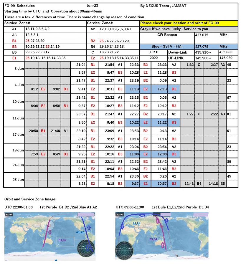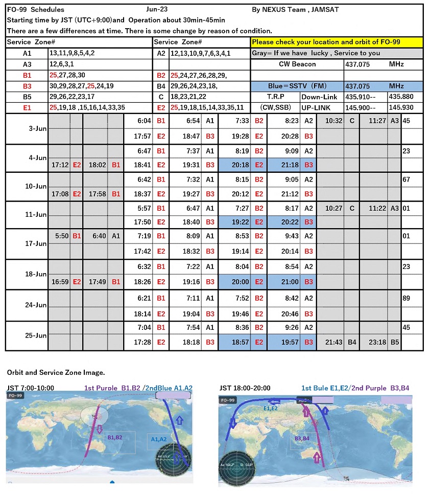 NEXUS (FO-99) operation schedule June/2023
