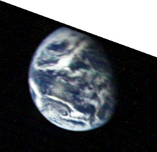| 世界時間 22:59 にAカメラによる初めての撮影を行いました。 露光時間は 0.125 秒でした。 高度は約 58,700 km MAは 125でした。これがSCOPE Aカメラで地球を撮影するのに最も適したタイミングでした。 /WD0E Jim |