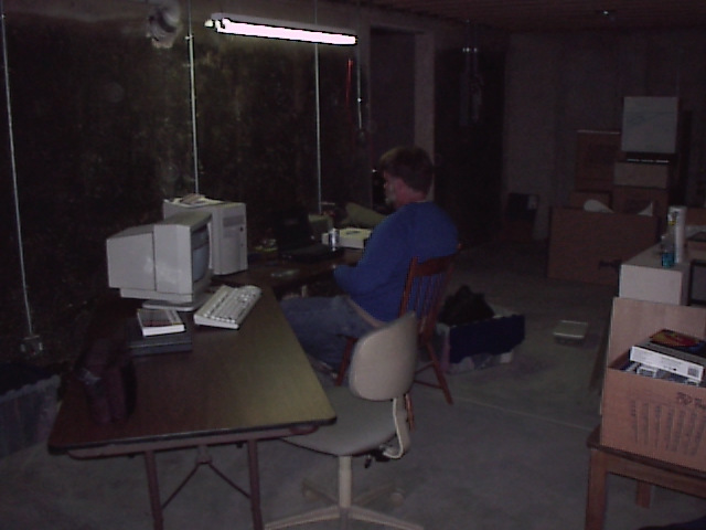 次の画像はまだ改修中で電気も暖房もなにもないBdale N3EUAの自宅の地下室に急にしつらえたRUDAK-SCOPEのテストベンチの様子です。