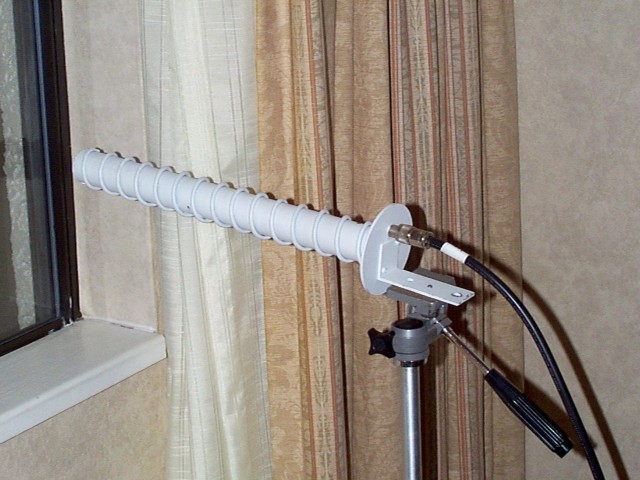- Sバンド受信用アンテナ越しに P3D の屋上アンテナを見ています。この Sバンドアンテナ はわれわれの部屋にあり、Lバンドアンテナ はスイートの別の部屋にあります。