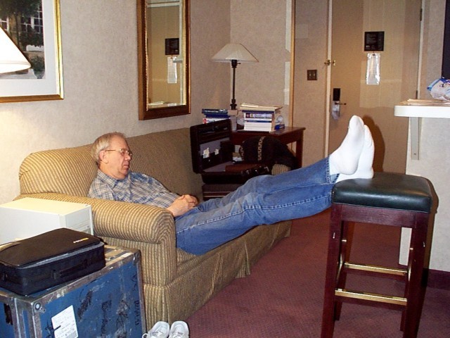 - これがRUDAKの部屋での唯一の Chuck Green, N0ADI の写真です。ChuckはRUDAKの部屋と衛星を行ったり来たりし、試験用の小物を作ったり、衛星とRUDAKの2つのチームの予定を擦りあわせるのを手伝ったりしました。これが唯一彼が写真を撮る間じっとしていた時です。